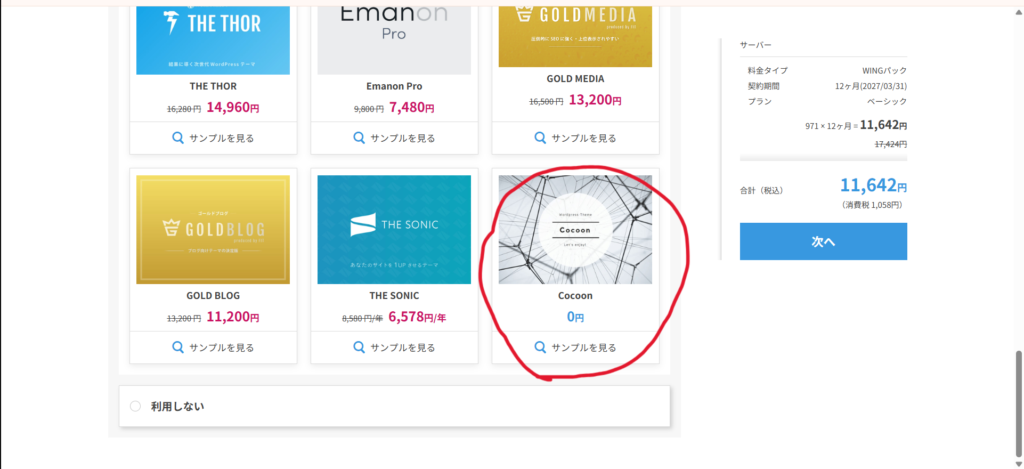 設定画面に映るので、こちらのプランを12ヶ月で選択します。